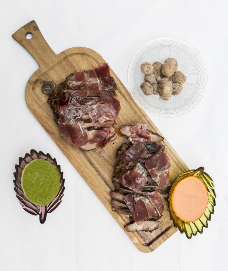 Una vez sentados a la mesa, el propio chef explicó a los asistentes que les invitaba a descubrir en cada plato el toque ibérico de bellota. Se trataba de un menú con varios platos para comer con las manos, para divertirse experimentando y probando, en definitiva, para disfrutar como él lo había hecho en la cocina diseñando el menú.